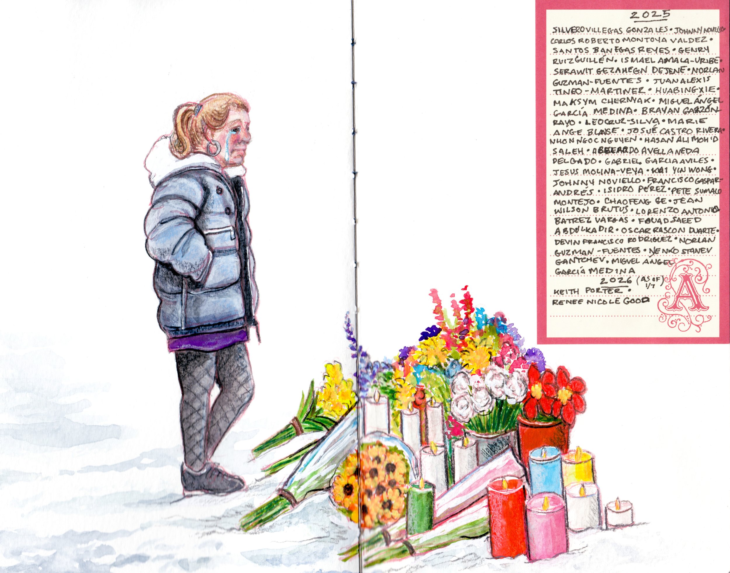 mixed media on bound paper 8.25”x5”